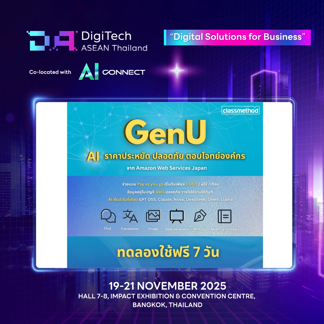 Classmethod Thailand – AWS Premier Partner, provides comprehensive consulting, design, and development services for AWS Cloud, along with GenU, an AI platform that enhances work efficiency, ensures data security, and reduces costs by 97%.